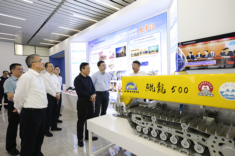 翁祖亮先后深入深海矿产资源开发国家重点实验室海洋采矿科技中心及海洋中试基地、中国五矿中央研究院选矿学科选冶实验室、负极材料扩大实验基地等进行现场调研,听取深海矿产资源开发利用技术国家重点实验室建设与重组、高端装备研发、矿产资源接续、“卡脖子”技术攻关等情况介绍,详细了解长沙矿冶院服务国家和集团战略、选矿学科建设和负极材料研究开发与产业化情况。